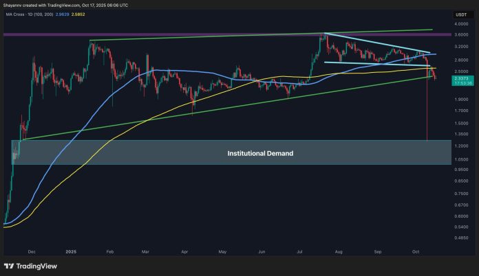 Currently, the asset is hovering around the $2.3 region, which overlaps with the 200-day MA and the lower boundary of the wedge pattern. This area serves as the final technical buffer before the price potentially revisits the institutional demand zone between $2 and $1.3, where major long-term accumulations took place earlier this year.