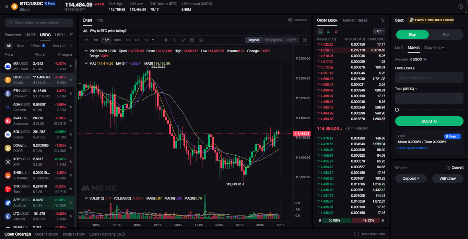 In my experience, the interface is easy-to-use and it brings a familiar feeling to it. You have to be careful with liquidity, though. Because MEXC is quick to list new altcoins, some of them have very thin order books and if you are a high-volume trader, your orders might incur significant slippage because of insufficient liquidity.