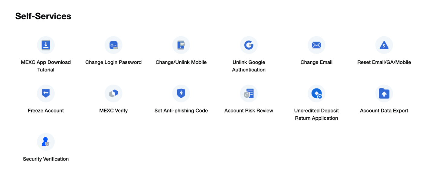 Customer support at MEXC is extensive. There’s a number of different self-service features, that you can find useful in certain situations.